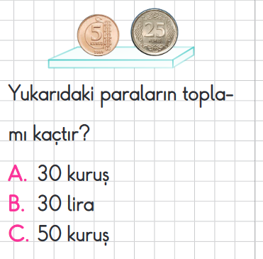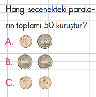 Şule’nin 1 tane 5 TL’si, 2 tane 10 TL’si var. Şule’nin kaç TL’si var?