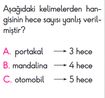Aşağıdaki kelimelerden hangisinin hece sayısı farklıdır?
