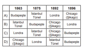 Bu bilgilere göre metro hatlarının hizmete girme tarihleri aşağıdakilerin hangisinde doğru verilmiştir?