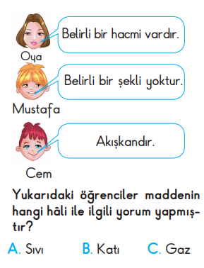 “Maddenin belirli bir şekli ve belirli bir hacmi olmayan hâline ..... hâli denir.” ifadesinde noktalı yere aşağıdakilerden hangisi gelmelidir?