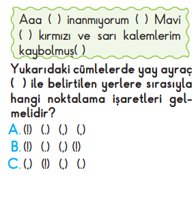 ayraç ile belirtilen yerlere sırasıyla hangi noktalama işaretleri