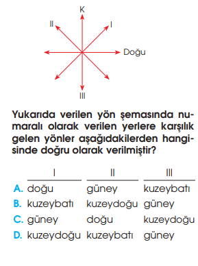 Yönümüzü bulmak için yukarıda verilen bilgilerin hangisinden yararlanamayız?