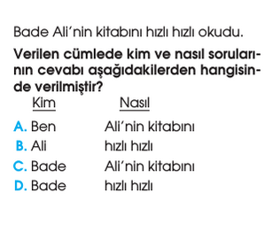 Yukarıdaki cümlede altı çizili kelime grubu hangi sorunun cevabıdır?