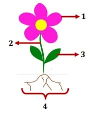 Aşağıdaki modelde bir çiçekli bitkinin temel kısımları verilmiştir?