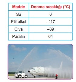 Buna göre kışın soğuk havalarda uçakların donmaması için tablodaki maddelerden hangisi ile yıkanması daha uygundur?