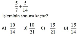 5. Sınıf Matematik Kesirlerle Toplama Çıkarma İşlemi (Test 5)