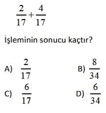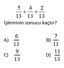 5. Sınıf Matematik Kesirlerle Toplama İşlemi (Test 3)