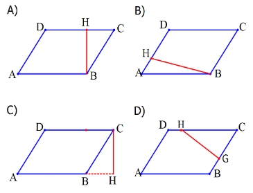 Aşağıdaki paralelkenarlardan hangisinin yüksekliği yanlış verilmiştir?