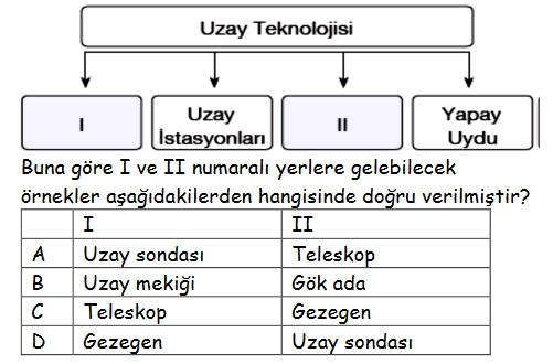 7. Sınıf Fen Bilimleri Uzay Araştırmaları (Test 3)