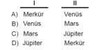 Buna göre I ve II ile numaralandırılan gezegenler aşağıdakilerden hangisidir?