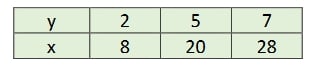 Aşağıdaki tabloda verilen x ve y doğru orantılıdır.