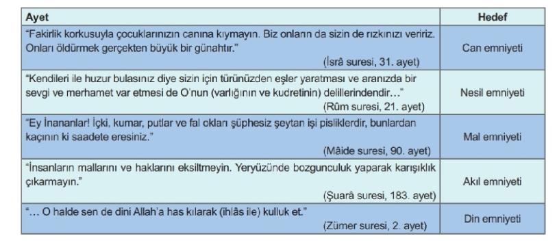 Verilen ayet, İslâm dininin korunmasını istediği aşağıdaki temel değerlerden hangisiyle ilişkilidir?