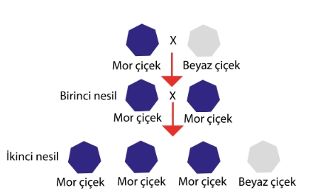 Birinci nesilde oluşan bireyler melez karakterindedir. | |