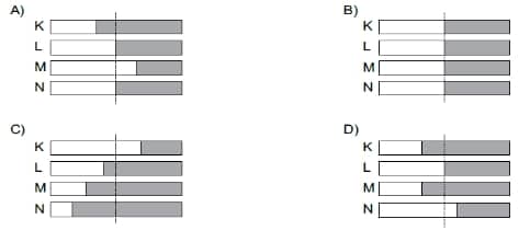 Buna göre 21 Aralık tarihi için hazırlanan kartta K, L, M ve N noktalarının gece ve gündüz sürelerinin gösterimi aşağıdakilerden hangisi olabilir?