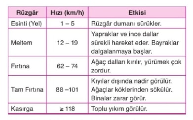Yukaridaki tabloda bazi riizgar tirleri ve neden olabilecedi etkiler verilmiştir.