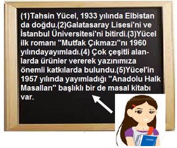 Sınıfta Tahsin Yücel’le ilgili sunum yapan Ece numaralanmış sözlerinin hangisinde anlatımına kendi düşüncelerini de katmıştır?